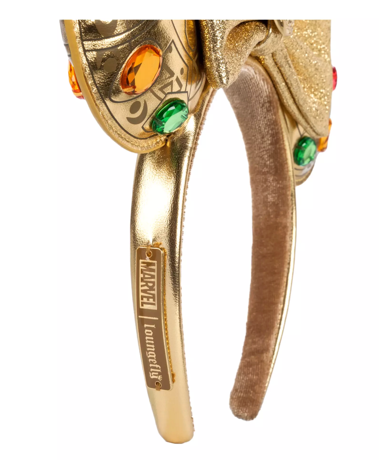 Padded golden ears feature embossed design inspired by the Infinity Gauntlet