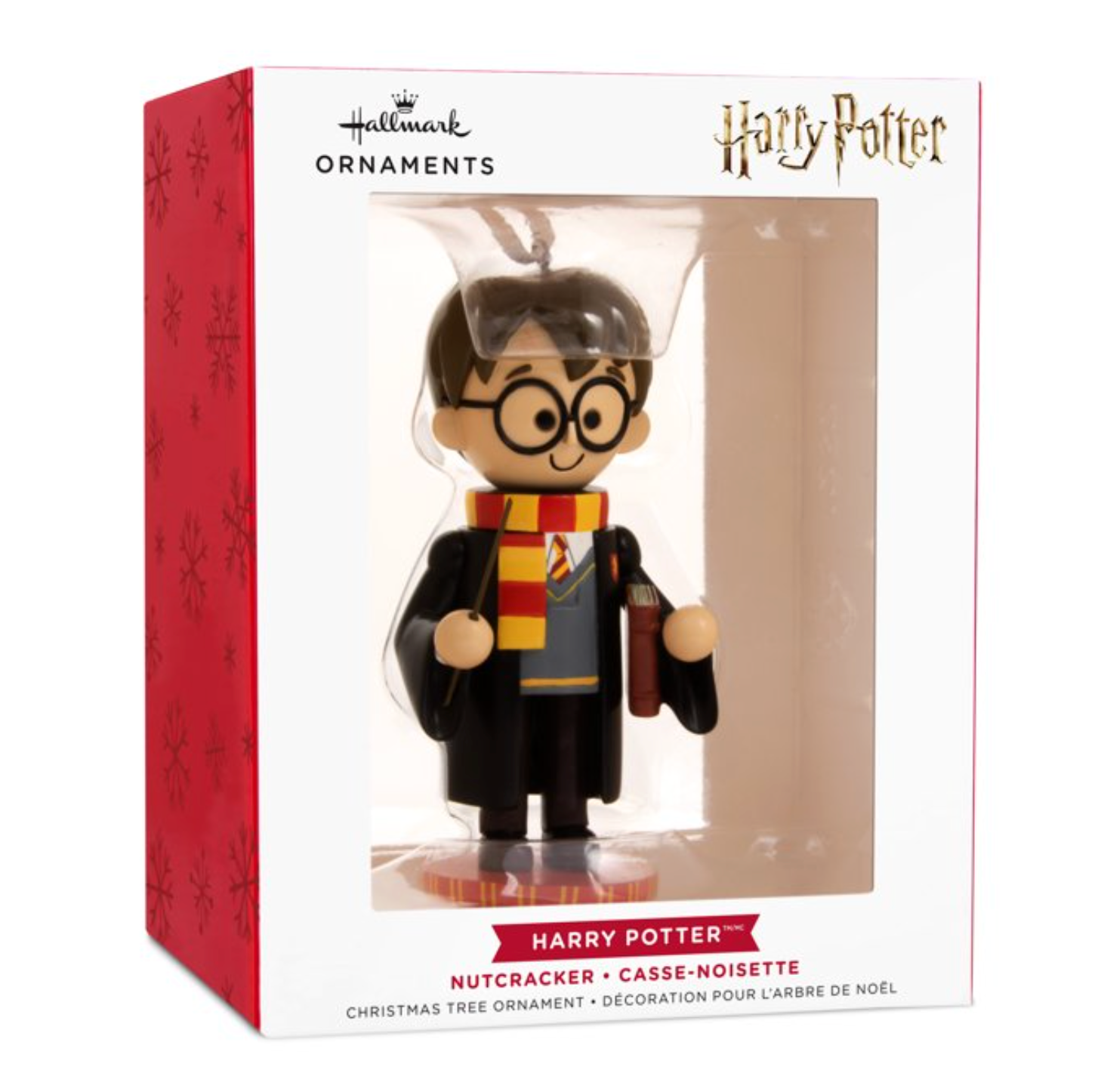 Summon seasonal fun for Harry Potter fans with this Hallmark Christmas ornament of The Boy Who Lived styled as a nutcracker wearing his Gryffindor robe and scarf.