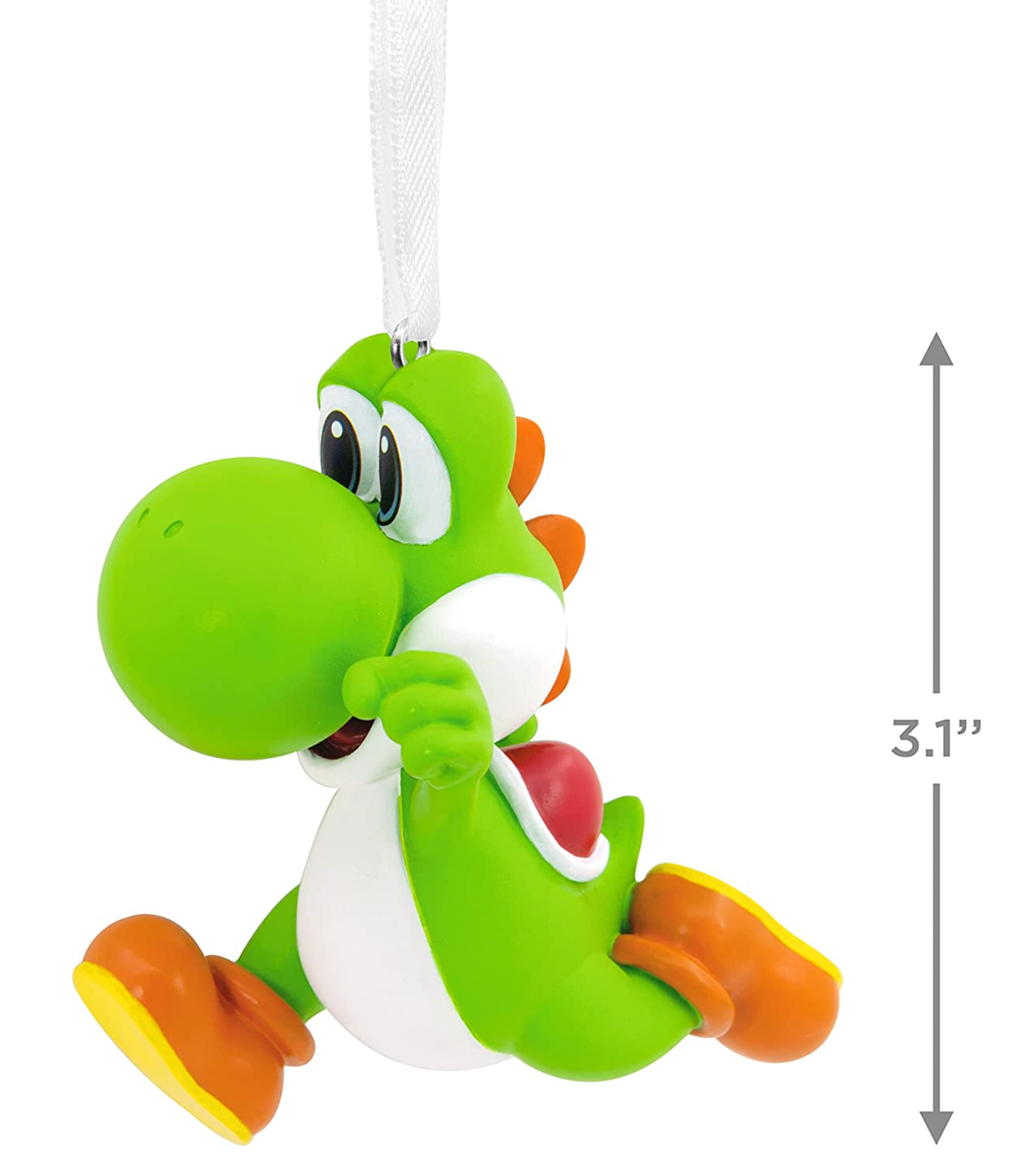Get ready for a holiday season full of adventure with Yoshi! This fun Christmas tree ornament features Mario's kind-hearted, perpetually hungry pal in a running pose.