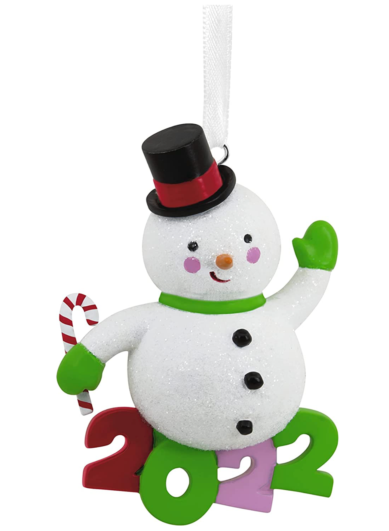 Decorate the tree and relive memories of a special year with this fun, dated Christmas ornament that features a snowman waving, holding a candy cane and sitting on 2022 numbers.