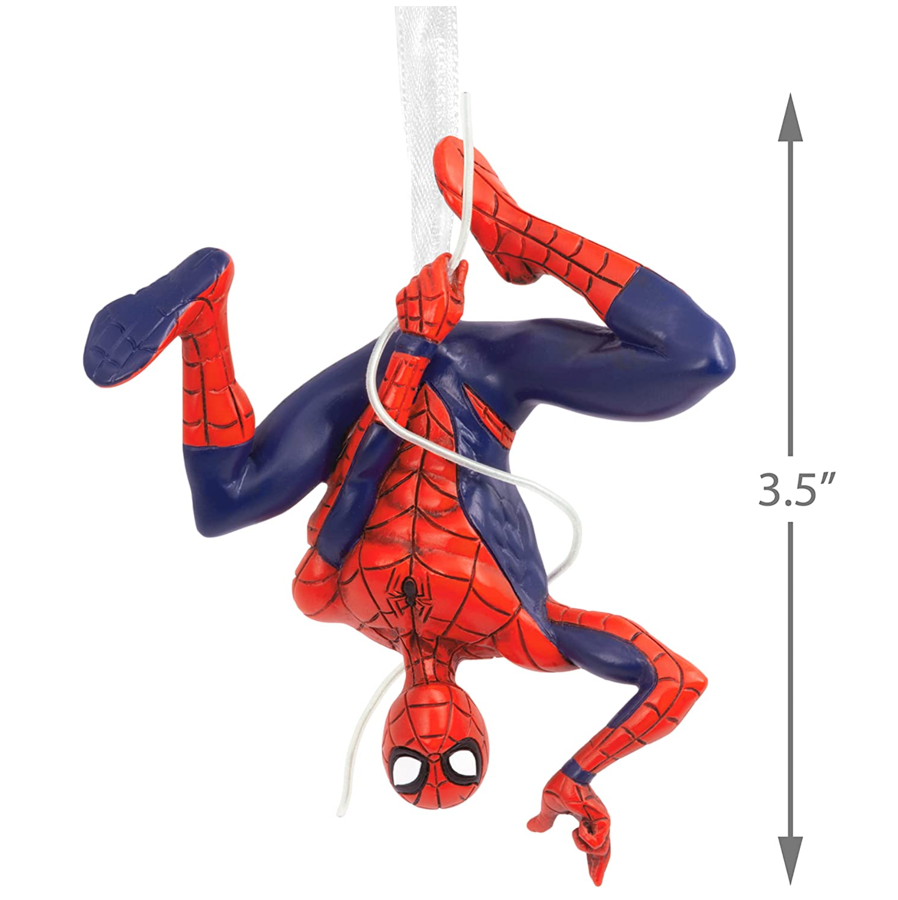 Add some amazing action and adventure to your Christmas tree with Spider-Man. This ornament features the web-slinging Super Hero dropping in to wave an upside-down holiday hello.