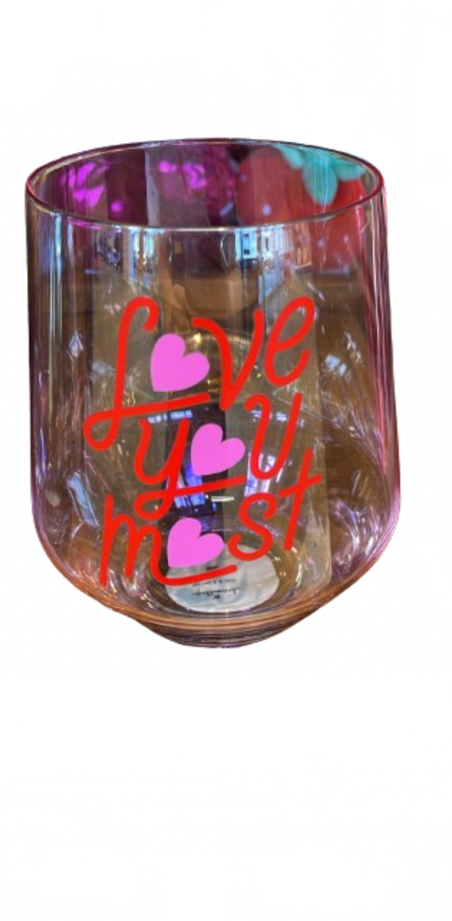 Hallmark Valentine Love You Most Jumbo Stemless Wine Glass New