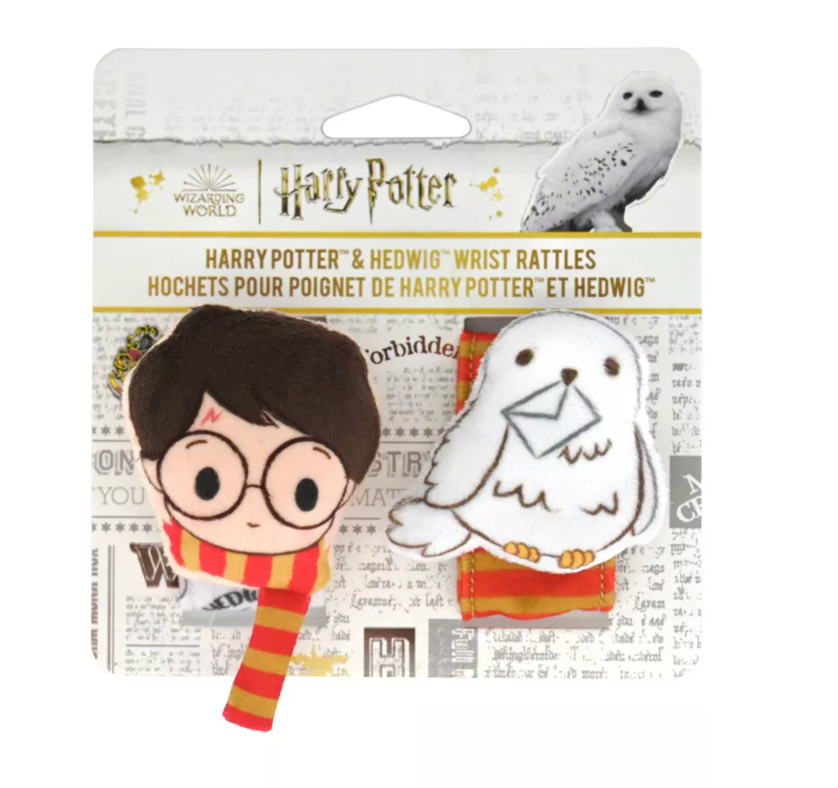 Harry Potter Gifts: Harry Potter baby wrist rattles featuring a Hedwig plush rattle. Baby will love the rattle auditory stimulation.