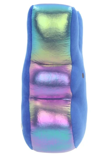 Smooth, multicolor iridescent fabric on the side catches the light