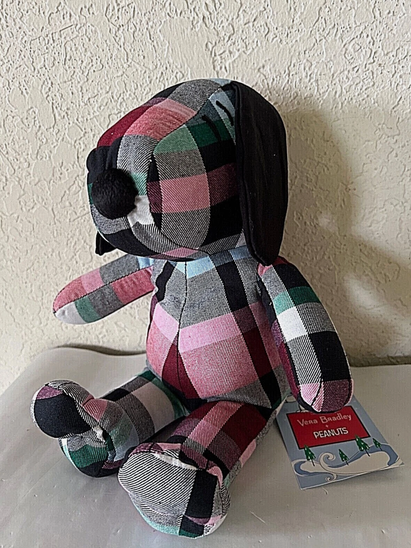 Vera Bradley Peanuts Collection Snoopy Plaid Fabric Pattern Stuffed Plush New