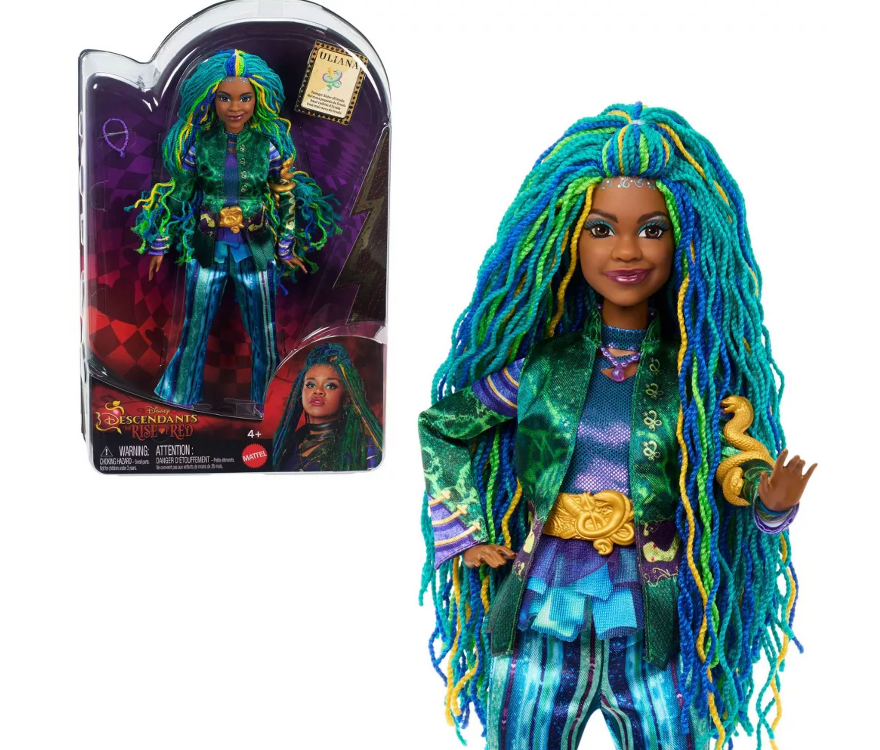 Conjure up sea magic with this doll of Uliana, Younger Sister of Ursula, from Disney Descendants: The Rise of Red! With long braids and signature outfit, this fashion doll looks just like her character in the movie as the teen sea witch with a mean girl streak. She bends at the arms, elbows, wrists and knees to dive into villainous mischief with her included seashell necklace. Makes a great gift for fans who will want to collect them all! Each sold separately, subject to availability. Doll cannot stand alone. Colors and decorations may vary.