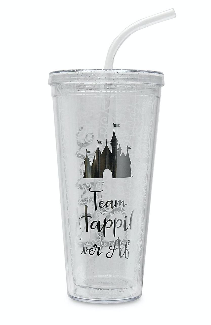 Silver ''Team happily ever after'' text with Fantasyland Castle screen art on opposite side