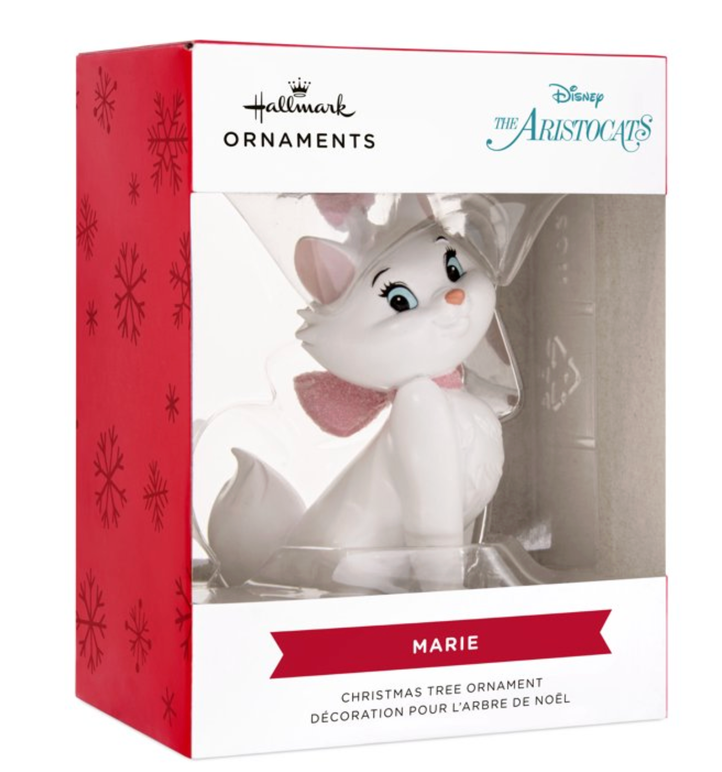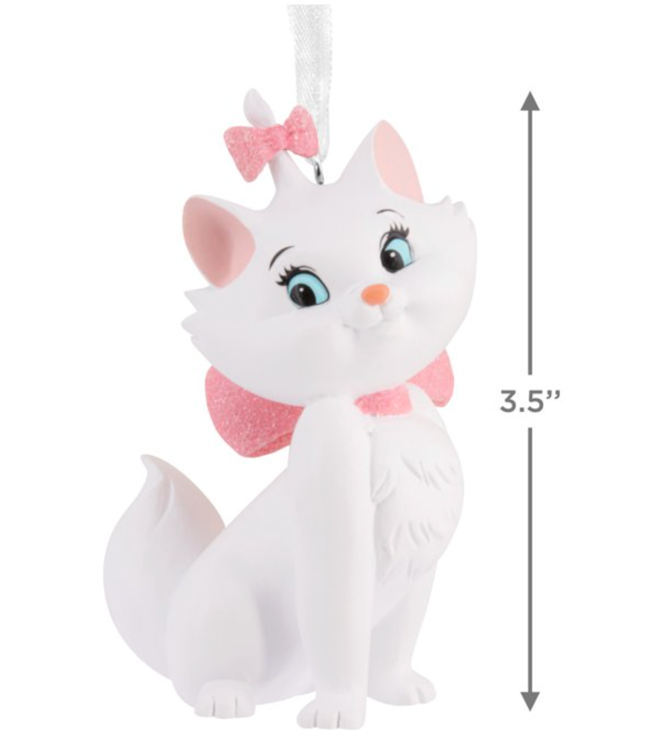 Delight fans of the classic Disney movie "The Aristocats" with this Marie Hallmark Christmas ornament featuring the precious white girl kitten dressed in glittery pink bows.