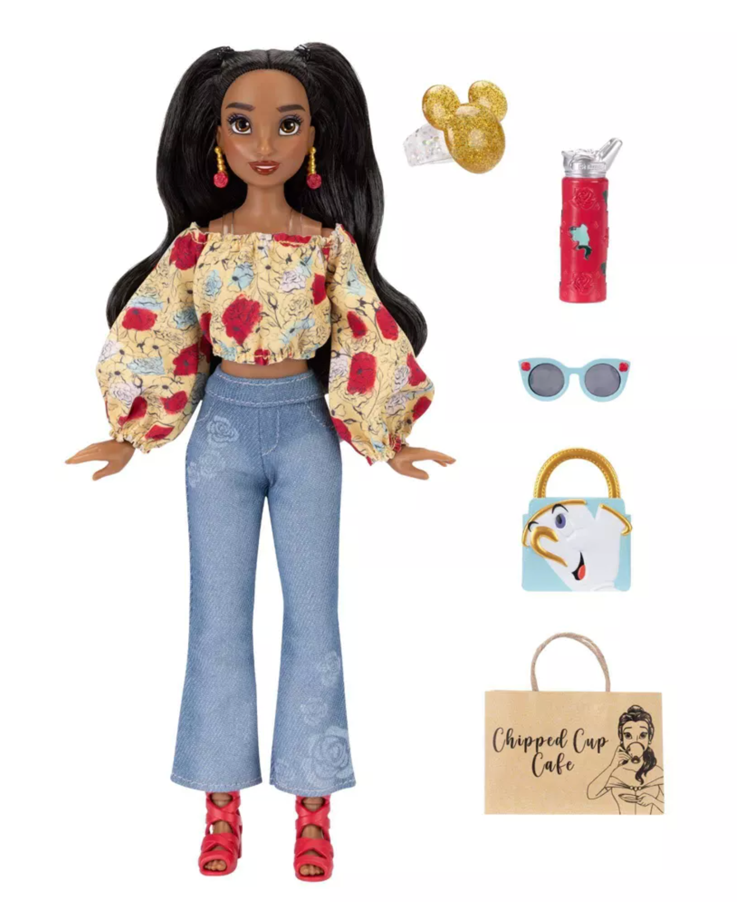 Disney ily 4EVER i ♡ Belle doll is a true beauty in her rose-themed top and jeans