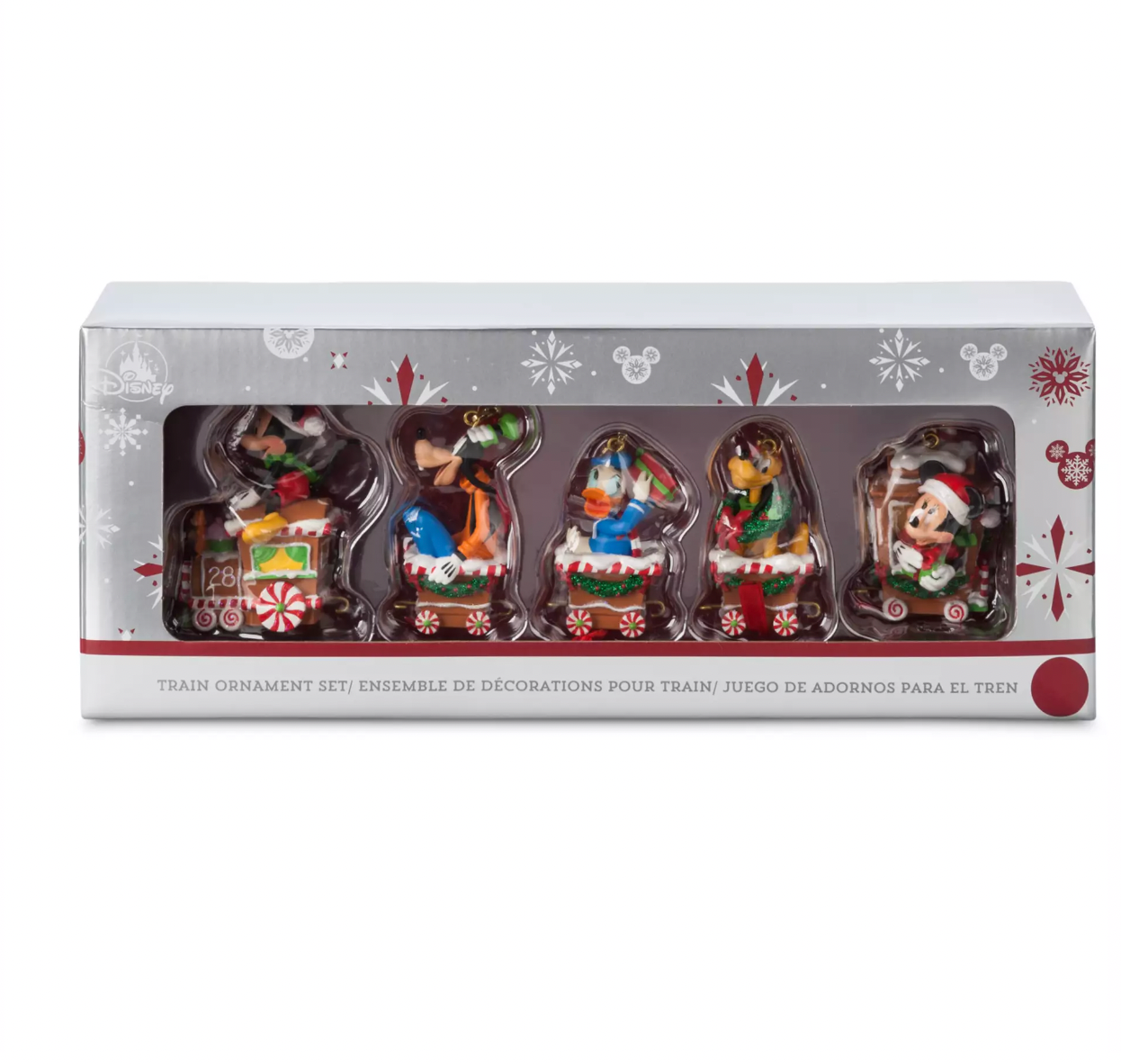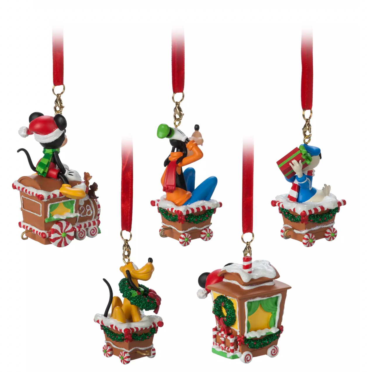Disney Mickey and Friends Gingerbread Train Christmas Ornament Set New with Box
