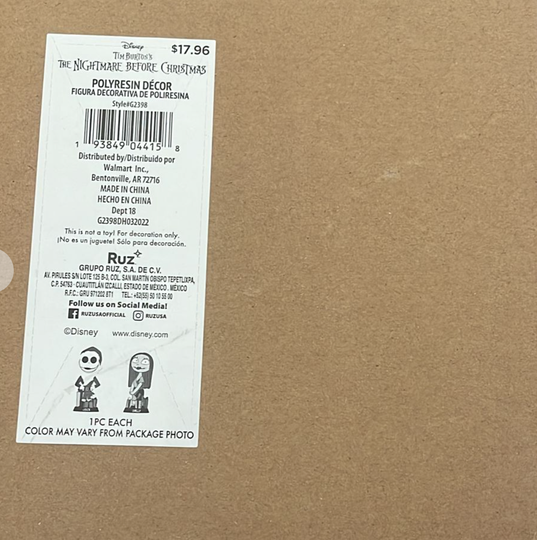 Disney Nightmare Before Christmas Jack Sally Polynesian Decor New with Box