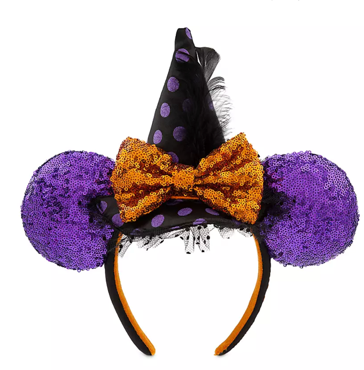 Disney Parks Halloween Minnie Sequined Witch Ear Headband Adults New with Tag