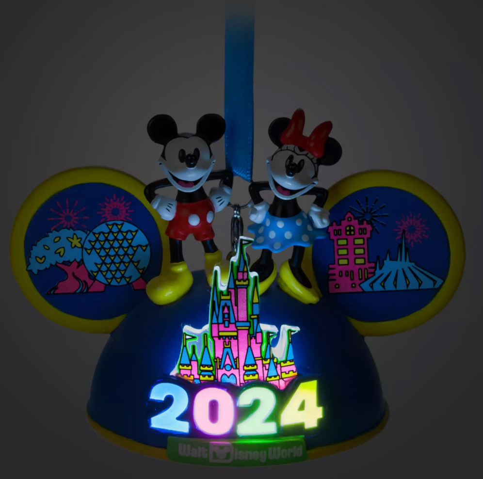 Disney Walt Disney World 2024 Mickey and Minnie Light-Up Ear Hat Ornament New