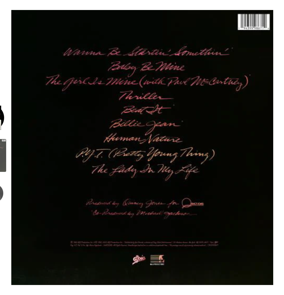 Disc 1: Michael Jackson's 1982 smash album Thriller changed pop music forever. This original album, featuring seven top 10 hits including "Billie Jean," "Beat It" and "Thriller," helped Michael win a record-setting eight Grammy Awards in one night.
