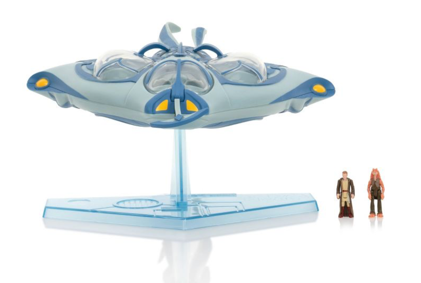 Ignite their imagination with three opening cockpits to fit up to seven micro figures accessories, a rotating propeller, a Flight Display Stand, and authentic details from STAR WARS: THE PHANTOM MENACE. Finally, play out these epic adventures with 1-inch micro figure accessories of Obi-Wan Kenobi and Jar Jar Binks, compatible with all other STAR WARS Micro Galaxy Squadron vehicles. Hit the waves with the Gungan Bongo Submarine...and dive into adventure! Only available at Target. Officially licensed STAR WARS product from Jazwares.